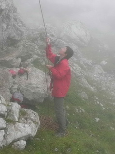 Malo drugače je bilo v soboto 6. septembra. Napoved močan veter in oblačno, tudi to se je uresničilo.Vreme je bilo 50 % boljše kot prvič. Dobesedno. Polovico časa je bilo megleno, drugo polovico se je vsaj videlo stene.S Silvotom sva splezala 3 smeri: Lukmanovo, Preložnikovo in še eno,za katero sva mislila, da je Pripravniška a so bile težave malo prevelike.Za takšno vreme so stene okoli Korošice prav primerne, dobra skala je še za povrh.