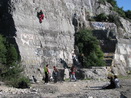 tudi bolj zmrzljivi so slekli bunde in flise. Tečajniki plezale šole so plezali smeri eno za drugo kot po tekočem traku.