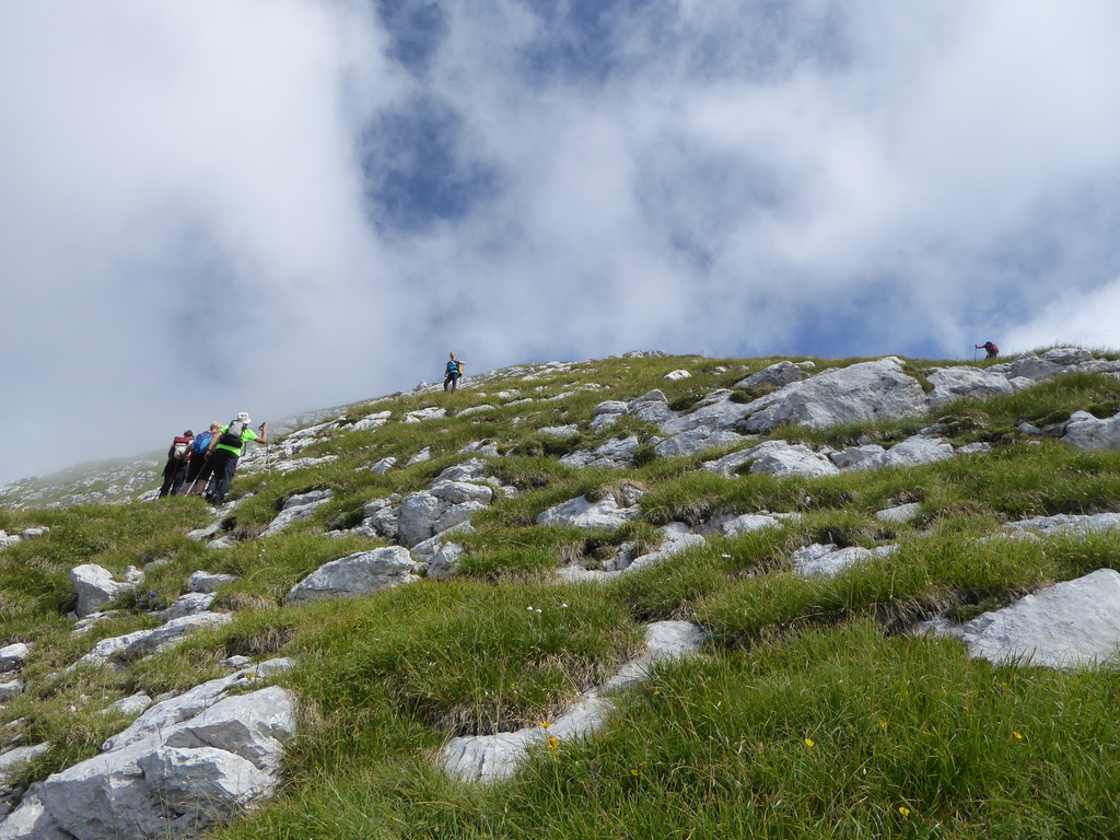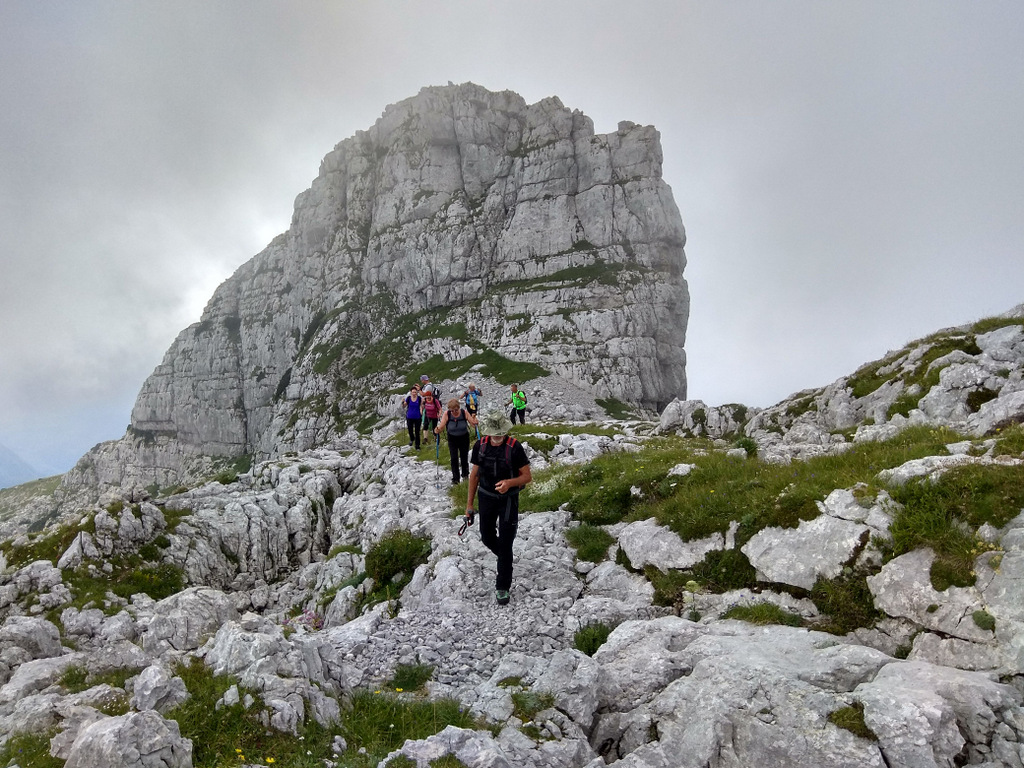Osem zagnanih pohodnikov se nas je zbralo na zgodnjo jutranjo soboto 28.07., nekateri neutrudljivi naravnost iz Pokljuškega tabora,  da osvojimo še eno manj poznano goro v sklopu Kaninskega pogorja, torej Veliki Babanski Škedenj.