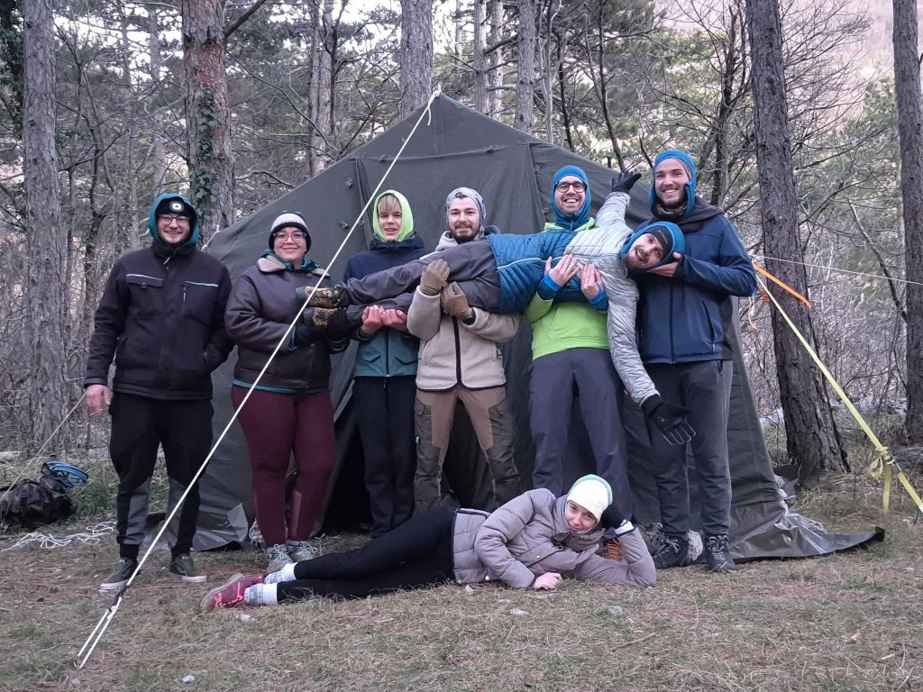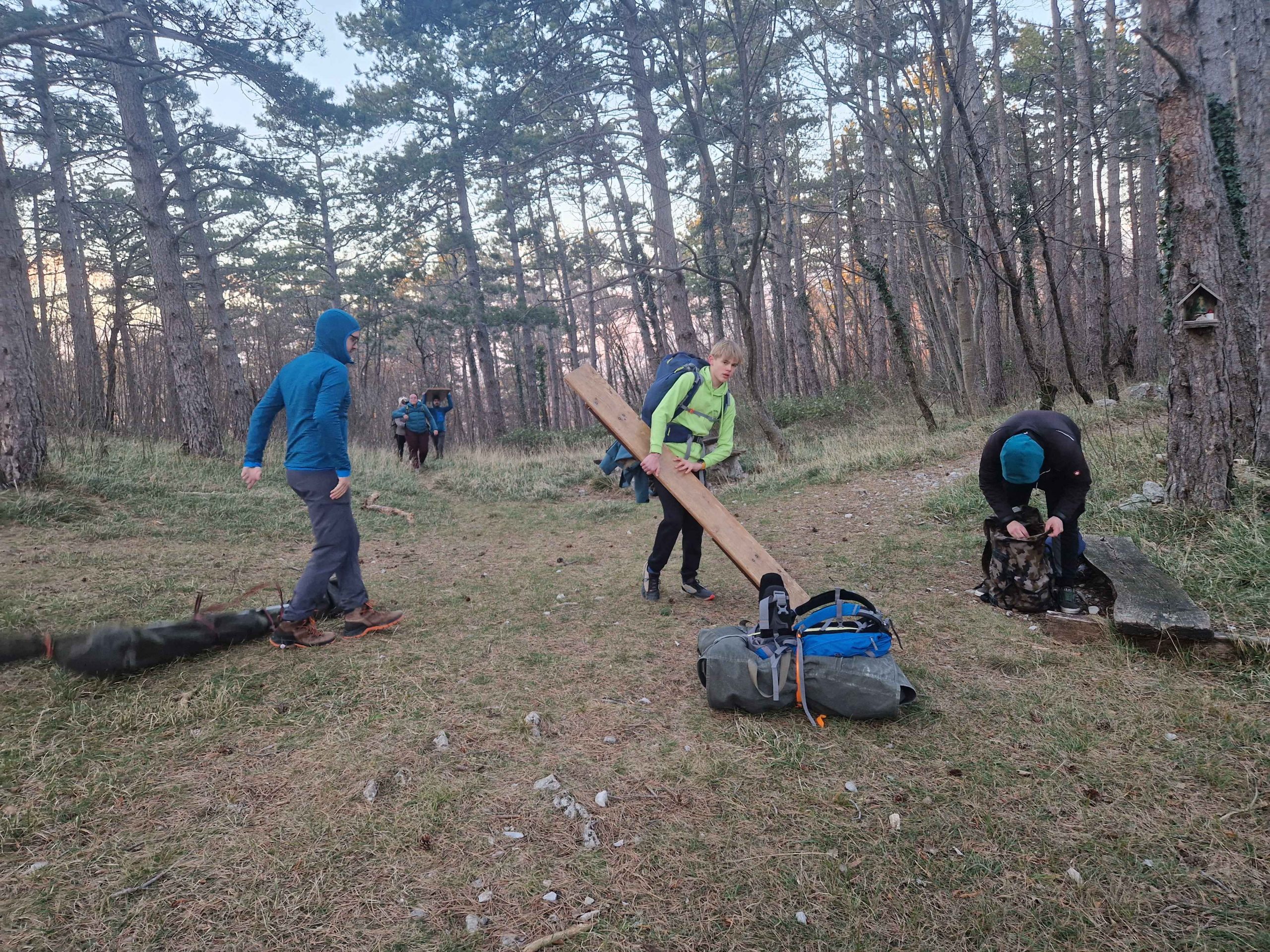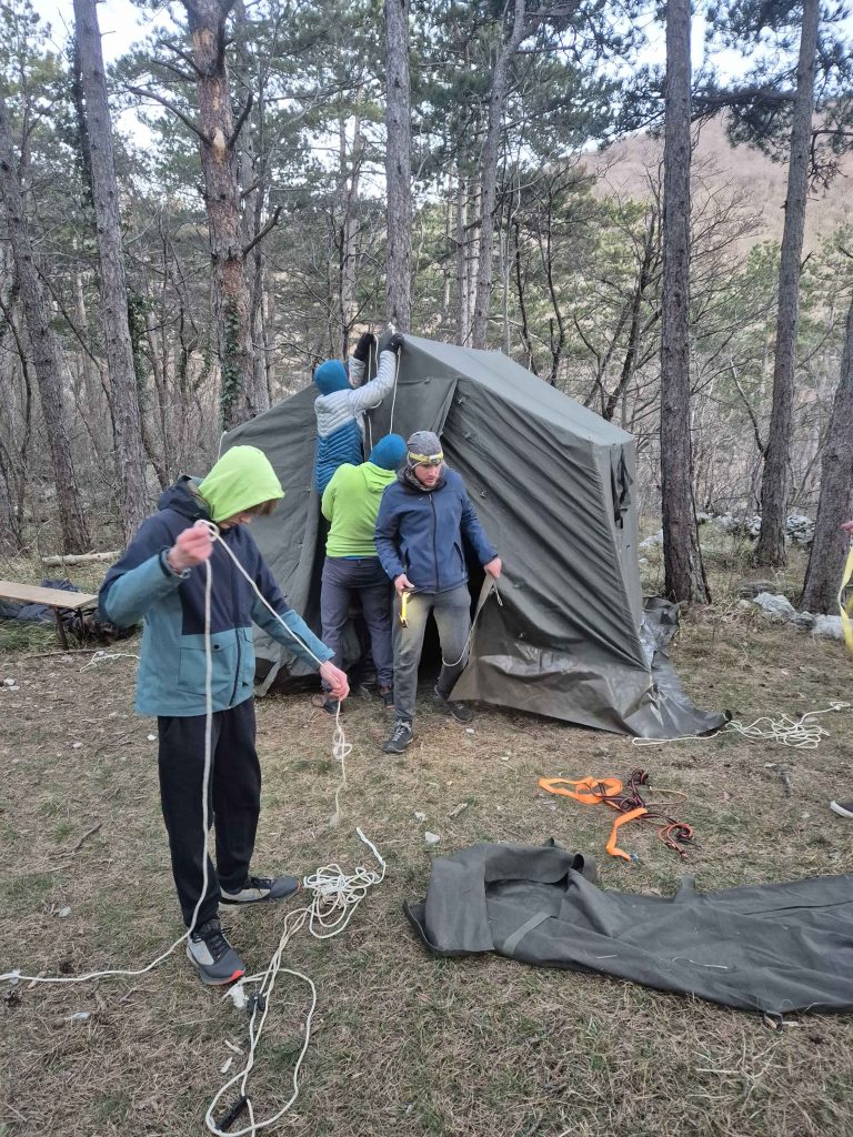 Naši pridni mladinci so že naredili akcijo in znosili opremo na vrh ter postavili šotor in vse potrebno.